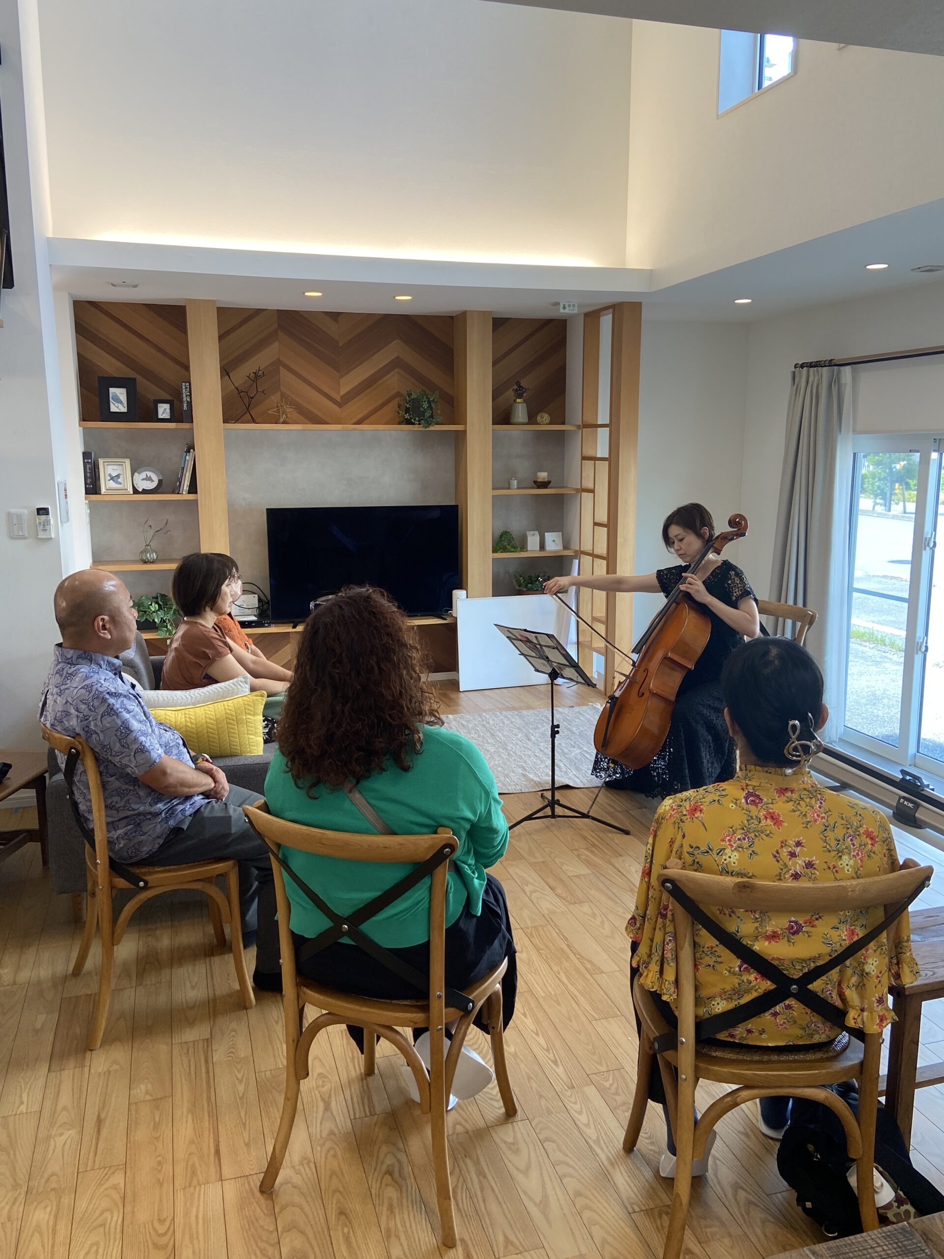 11月16日、福地組の木造モデルハウス「ココウチ」で、プロのチェリスト・棟元名美さんの演奏会を開催しました。