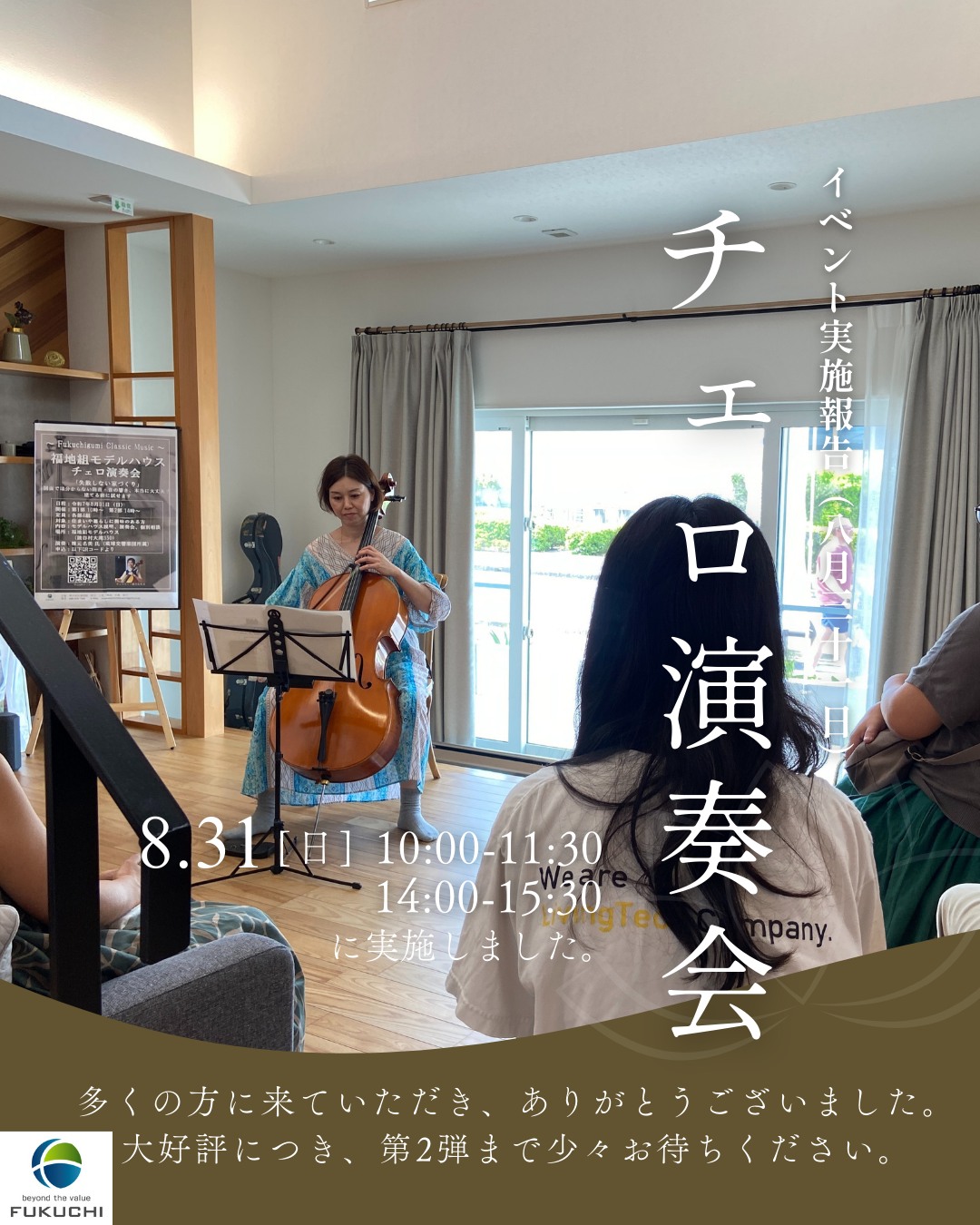 【ニュース&トピックス】モデルハウス🏠 × チェロ演奏会🏠 実施報告📢(8/31)