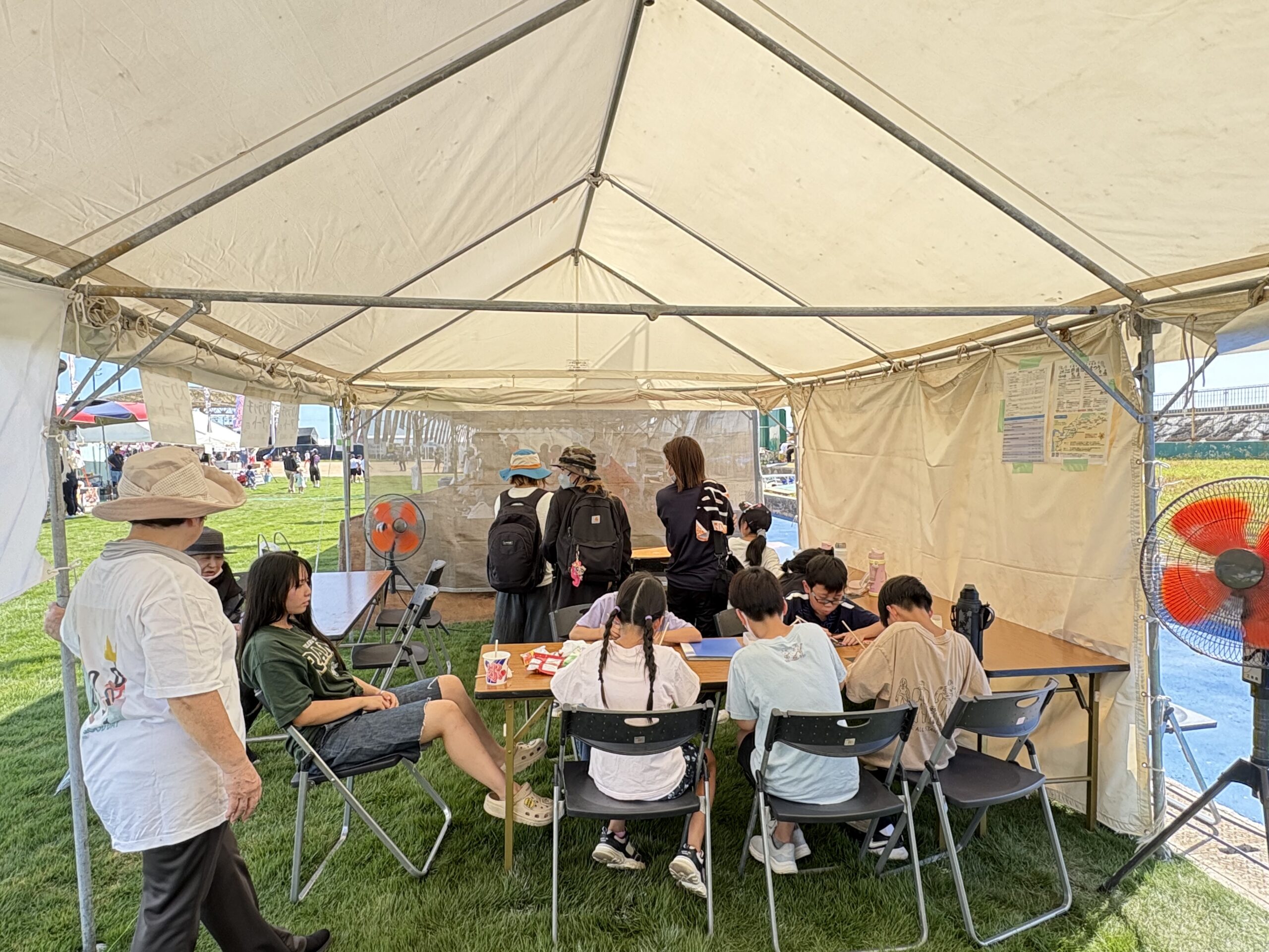 子どもたちは夢中になってお絵かきを楽しみ、 福地ブースには笑顔があふれていました。