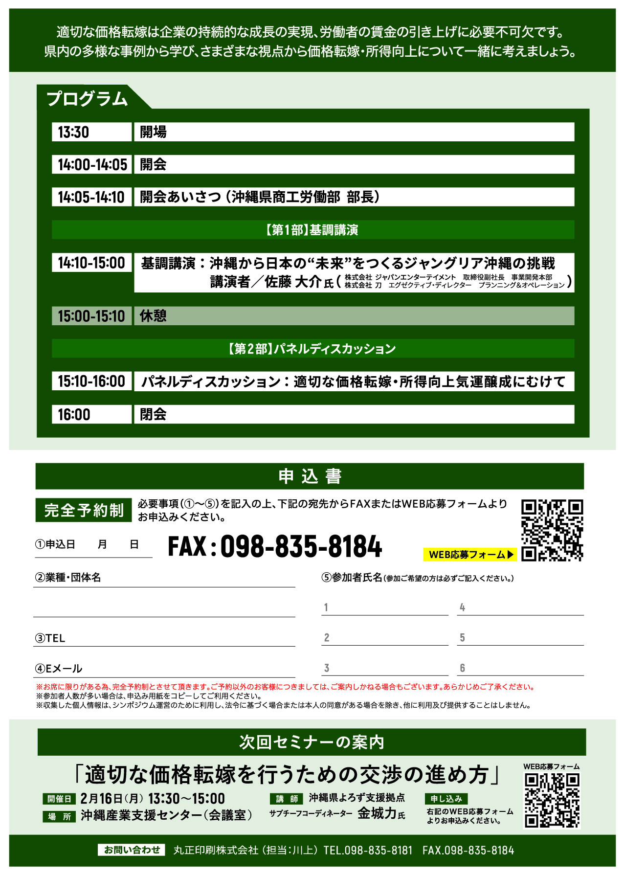またはチラシ裏面を記入の上、FAX(098-835-8184)にてお申し込みください。